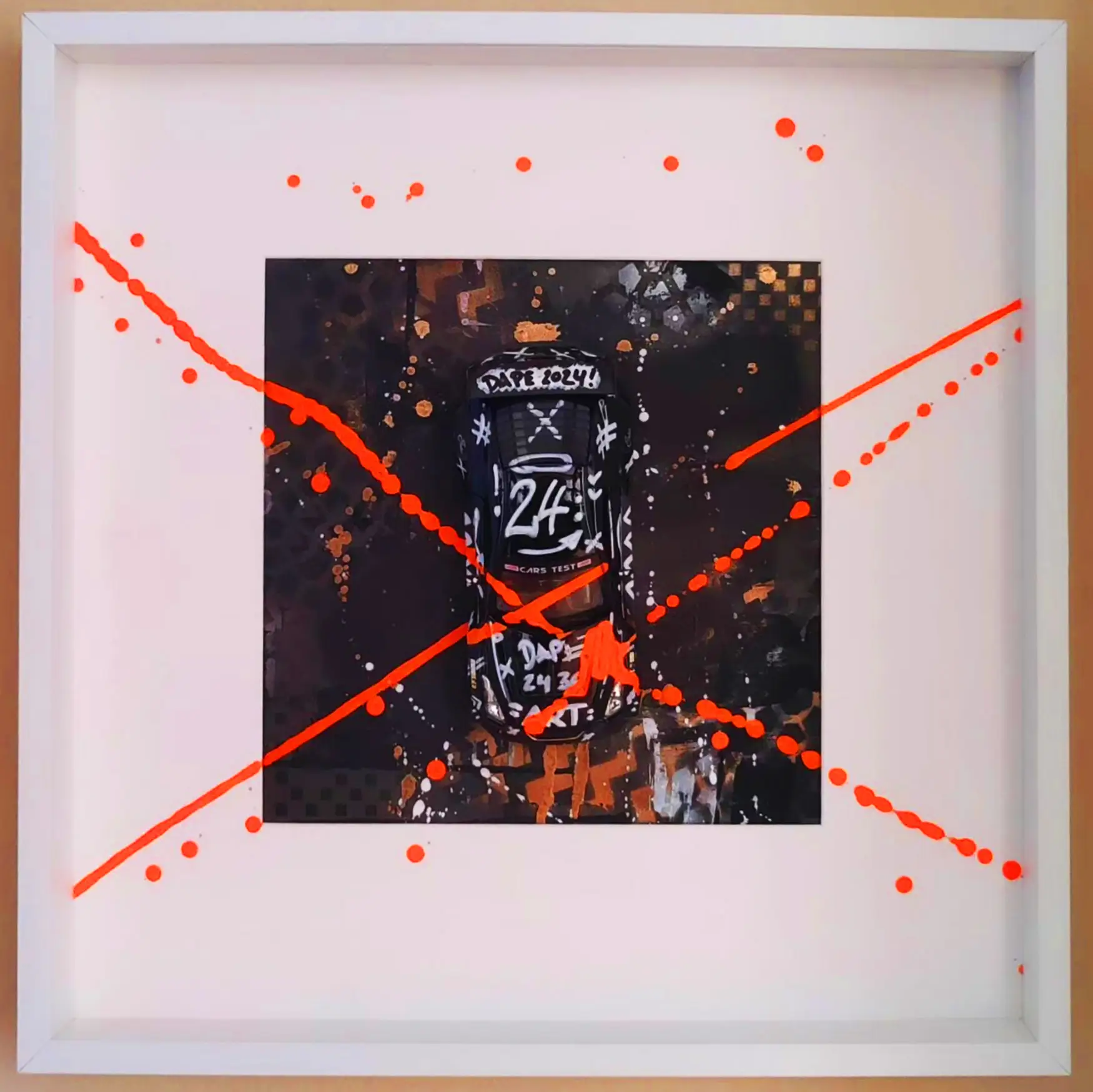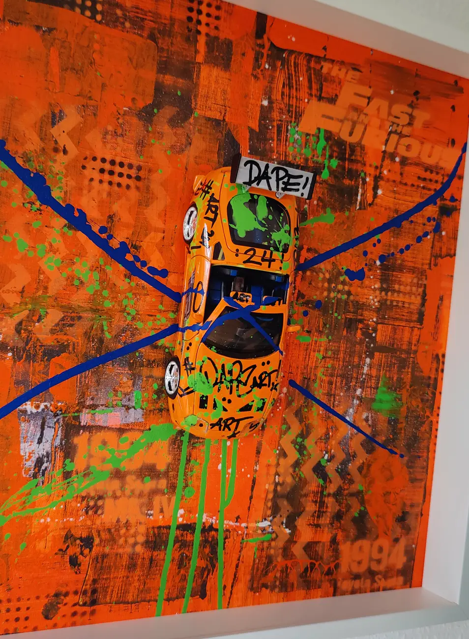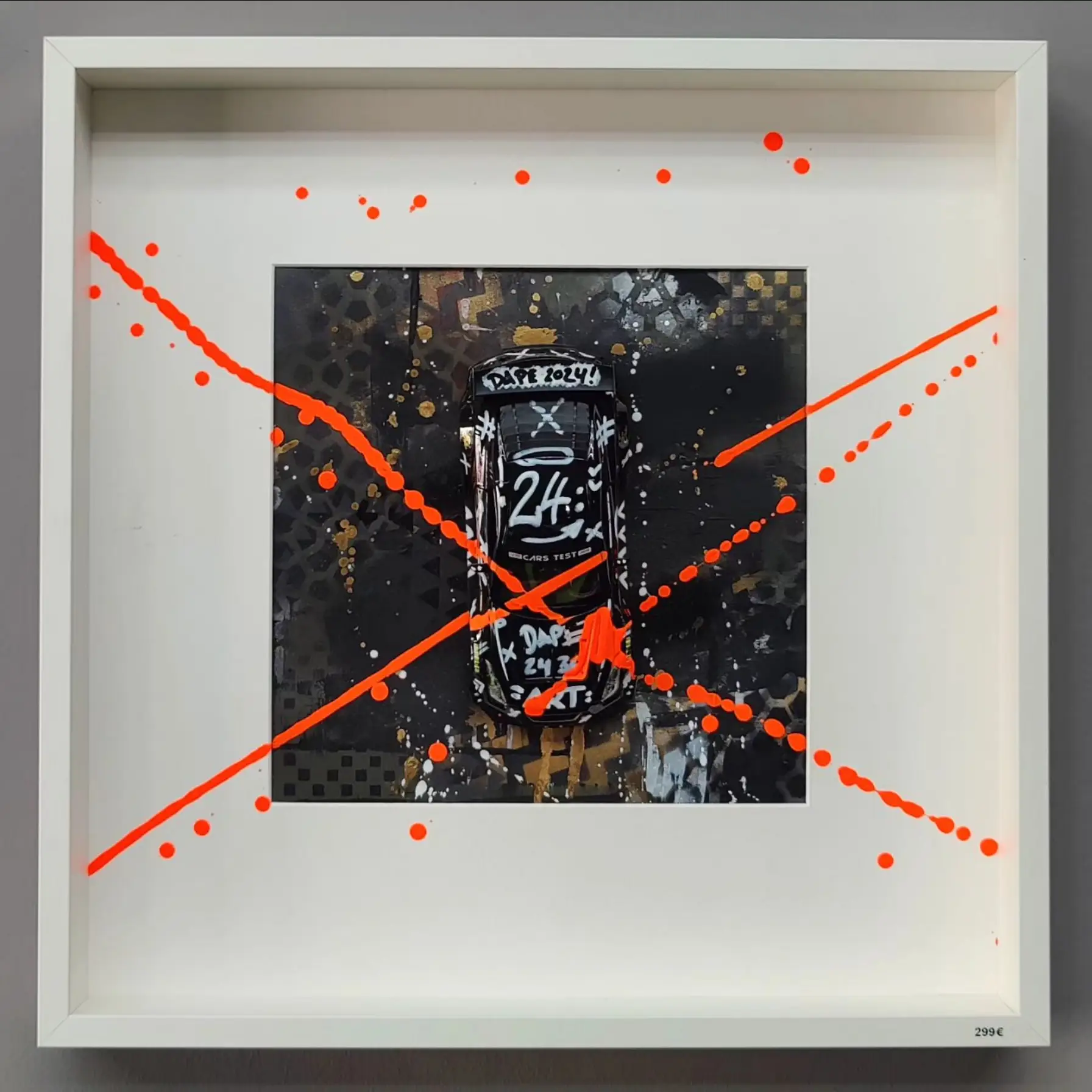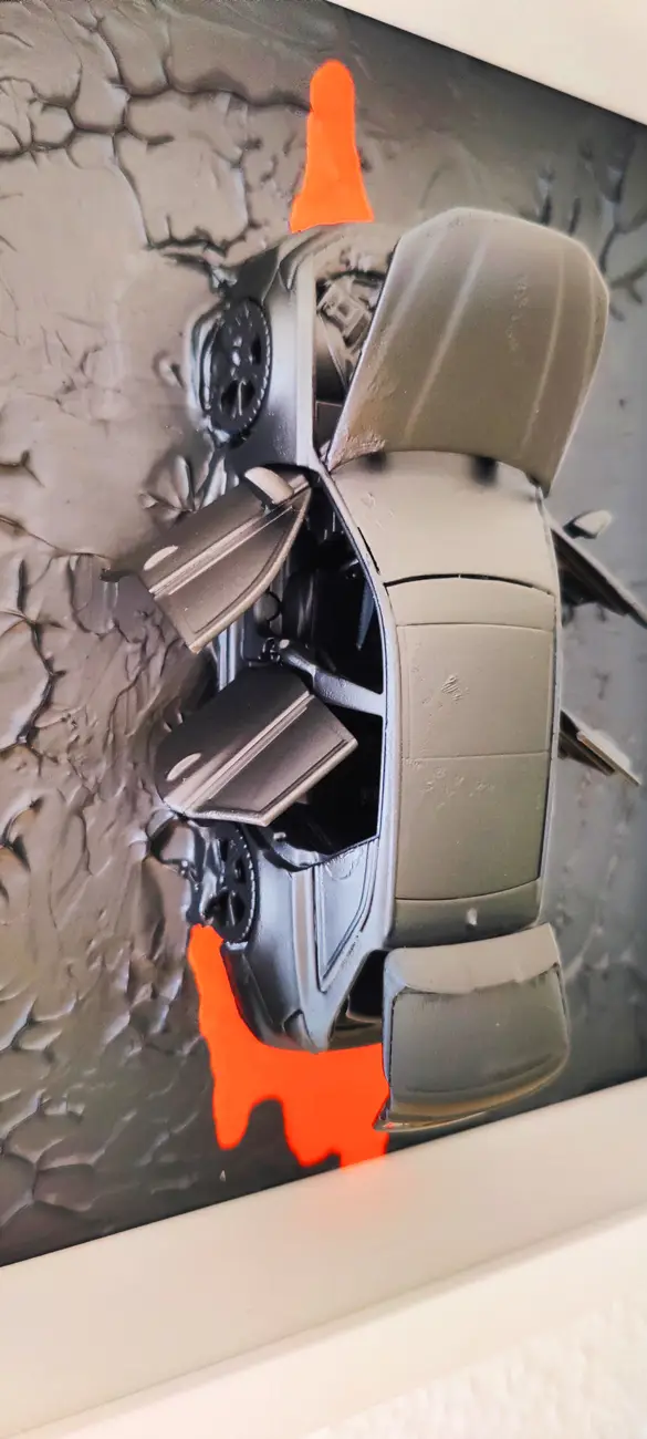 Meine gerahmten Einzelserien sind auf zehn Exemplare limitiert und exklusiv in der Galerie Elwert in Karlsruhe erhältlich. Diese Werke bestechen durch ihren 3D-Effekt, der durch folierte Scheiben entsteht. Ein weiteres Highlight sind meine gerahmten Unikate von 1:24 Modellfahrzeugen. Diese Einzelanfertigungen setzen aktuelle Supercars, Klassiker und Filmautos perfekt in Szene, kombiniert mit Graffiti- und Acrylelementen. Seit 2024 biete ich personalisierte Mixed Media Unikate an, die speziell für Firmen, Vereine oder leidenschaftliche Kunstliebhaber gestaltet werden. Diese individuellen Kunstwerke spiegeln Persönlichkeit und Geschichte wider.