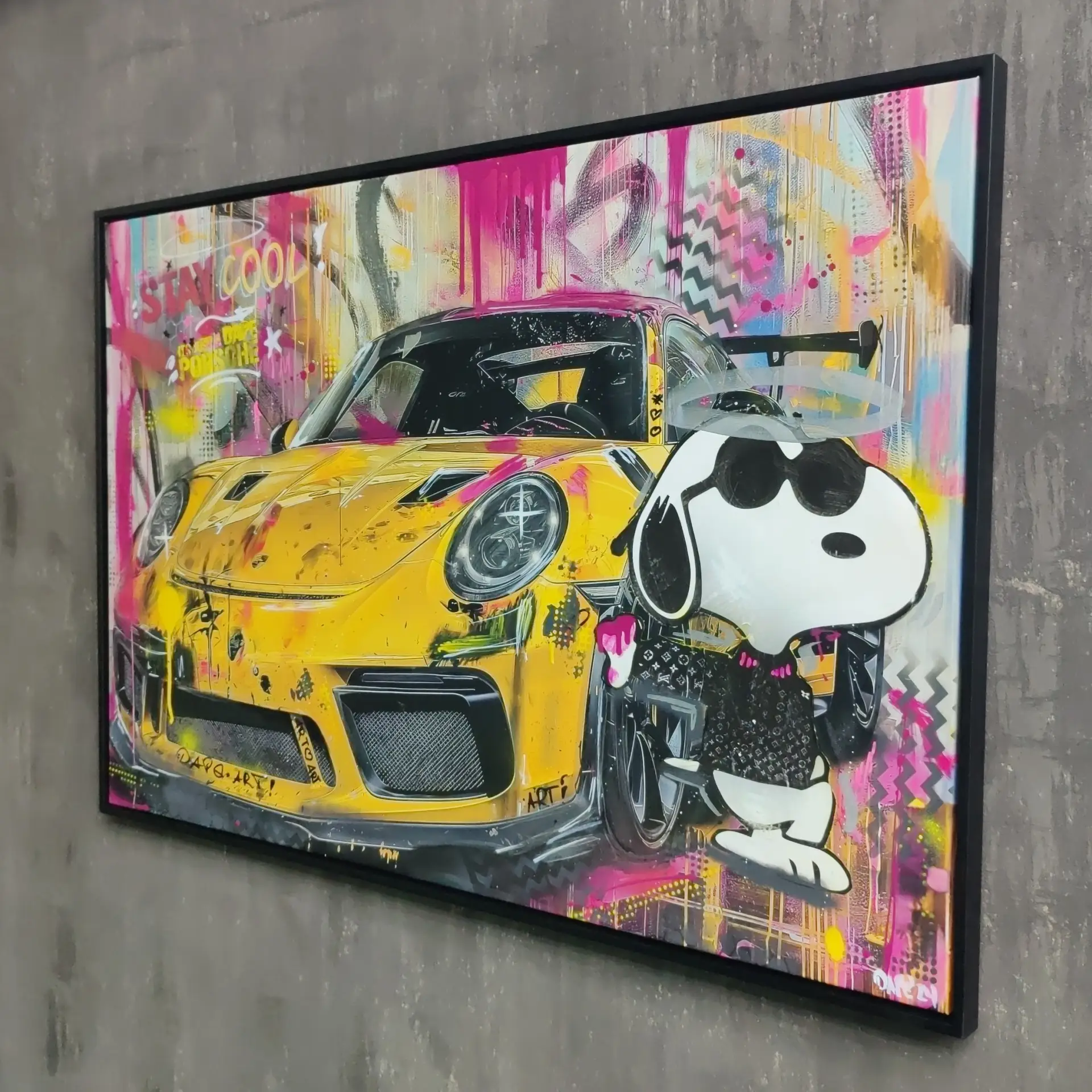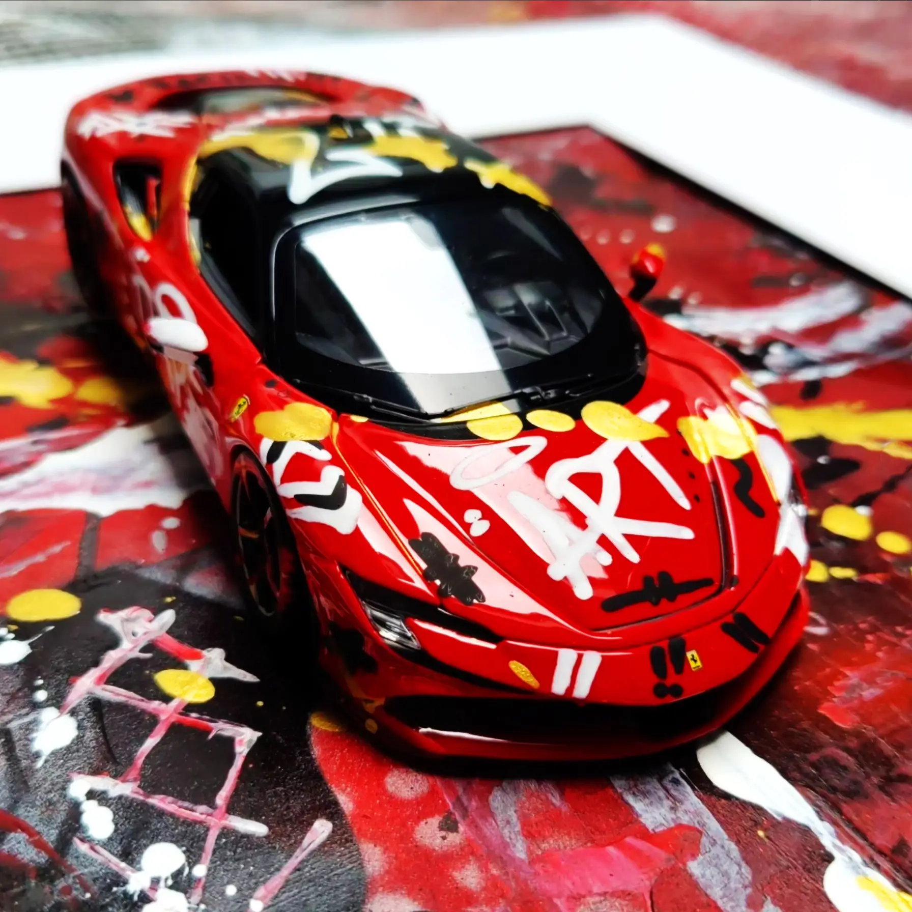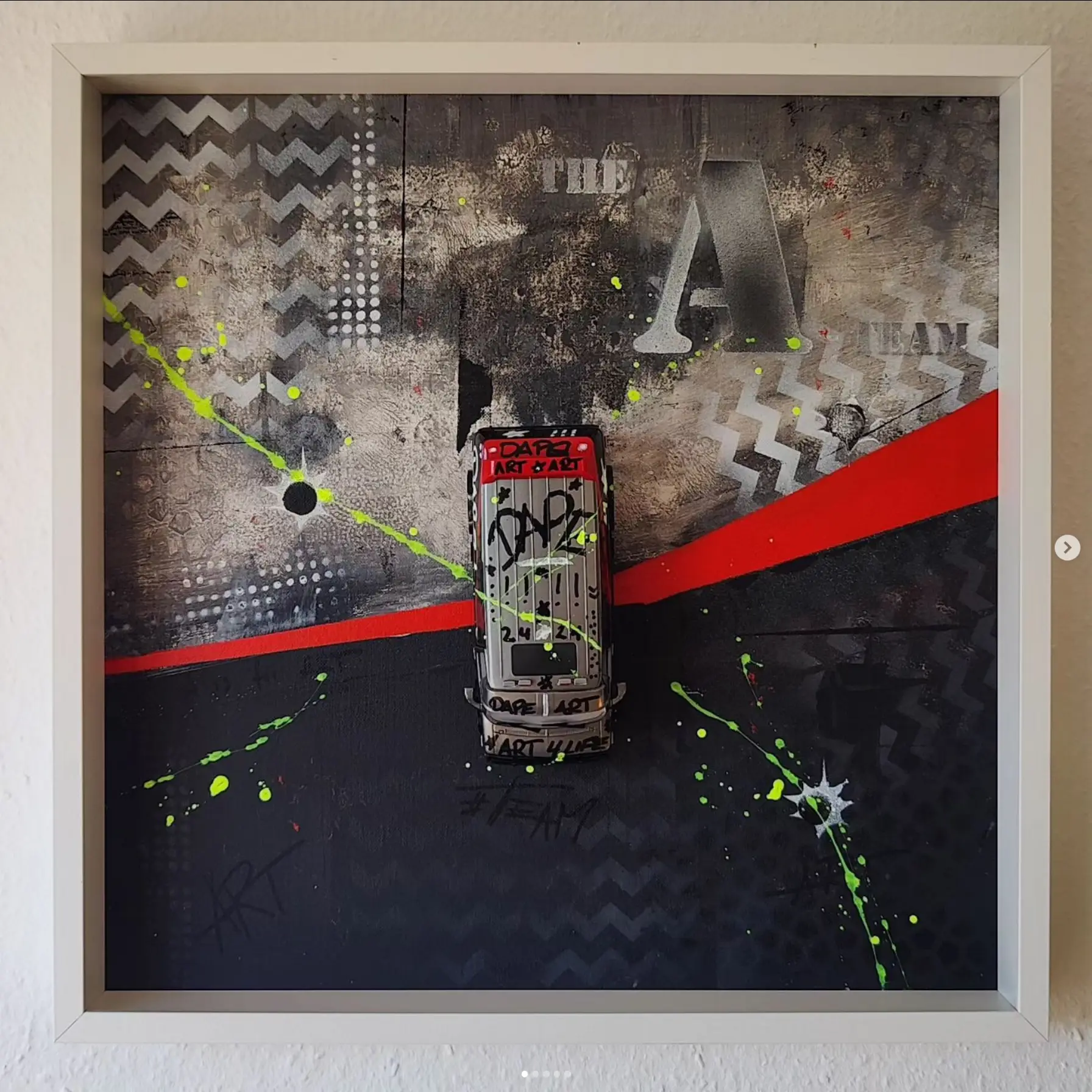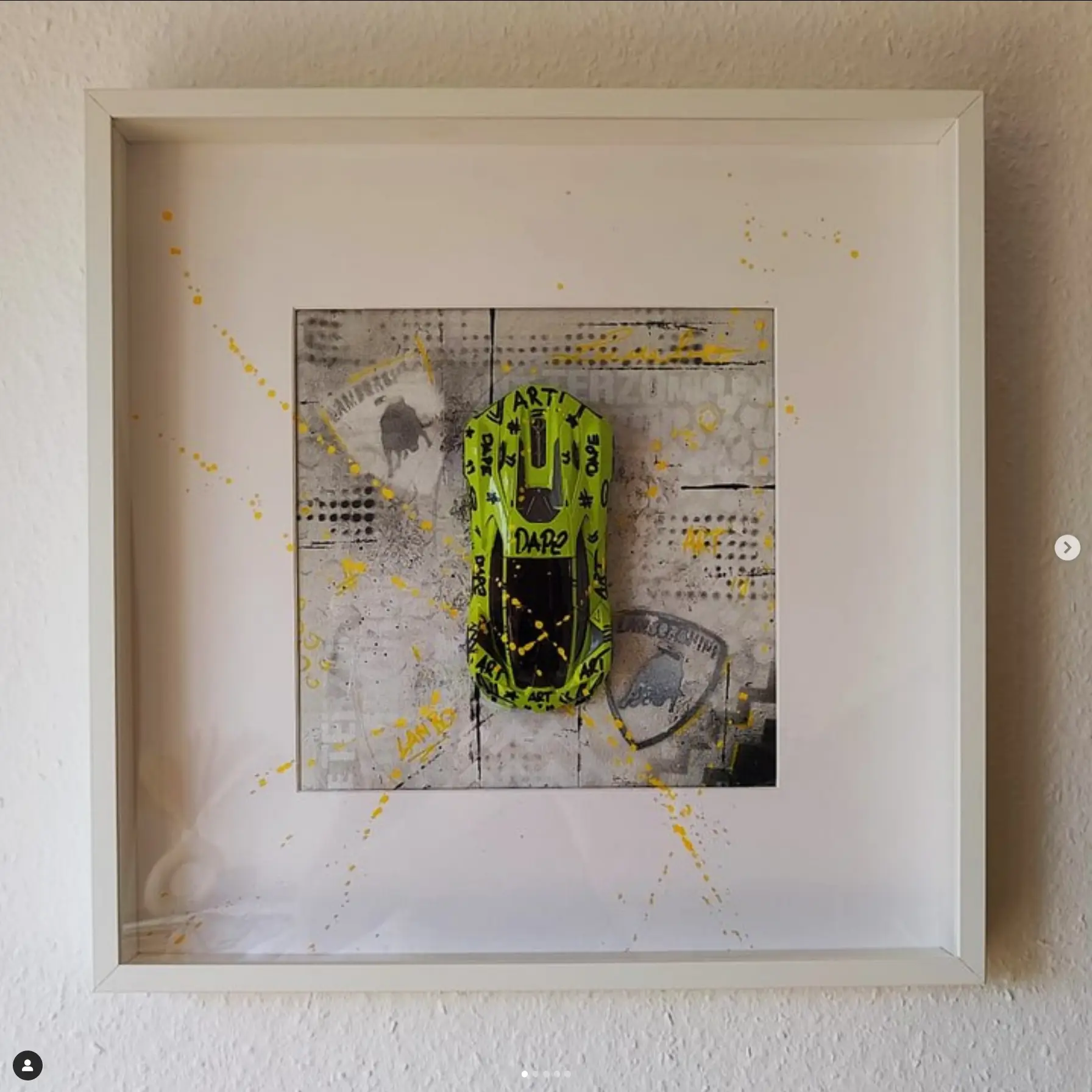Meine gerahmten Einzelserien sind auf zehn Exemplare limitiert und exklusiv in der Galerie Elwert in Karlsruhe erhältlich. Diese Werke bestechen durch ihren 3D-Effekt, der durch folierte Scheiben entsteht. Ein weiteres Highlight sind meine gerahmten Unikate von 1:24 Modellfahrzeugen. Diese Einzelanfertigungen setzen aktuelle Supercars, Klassiker und Filmautos perfekt in Szene, kombiniert mit Graffiti- und Acrylelementen. Seit 2024 biete ich personalisierte Mixed Media Unikate an, die speziell für Firmen, Vereine oder leidenschaftliche Kunstliebhaber gestaltet werden. Diese individuellen Kunstwerke spiegeln Persönlichkeit und Geschichte wider.